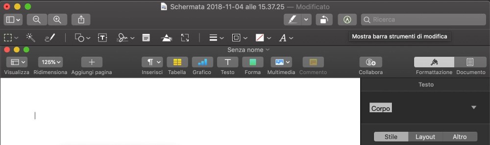 questi strumenti sono molto utili se dobbiamo fare dei veloci aggiustamenti ad una foto o ad uno screenshot, senza aprire altri programmi. Inoltre facendo uno screenshot utilizzando i tasti CMD SHIFT 3 (screenshot veloce a schermo intero) o CMD SHIFT 4 (screenshot a selezione) ci ritroveremo una mini anteprima di quanto fatto nell’angolo in basso a destra del Mac per verificare o modifica il file prima del salvataggio.