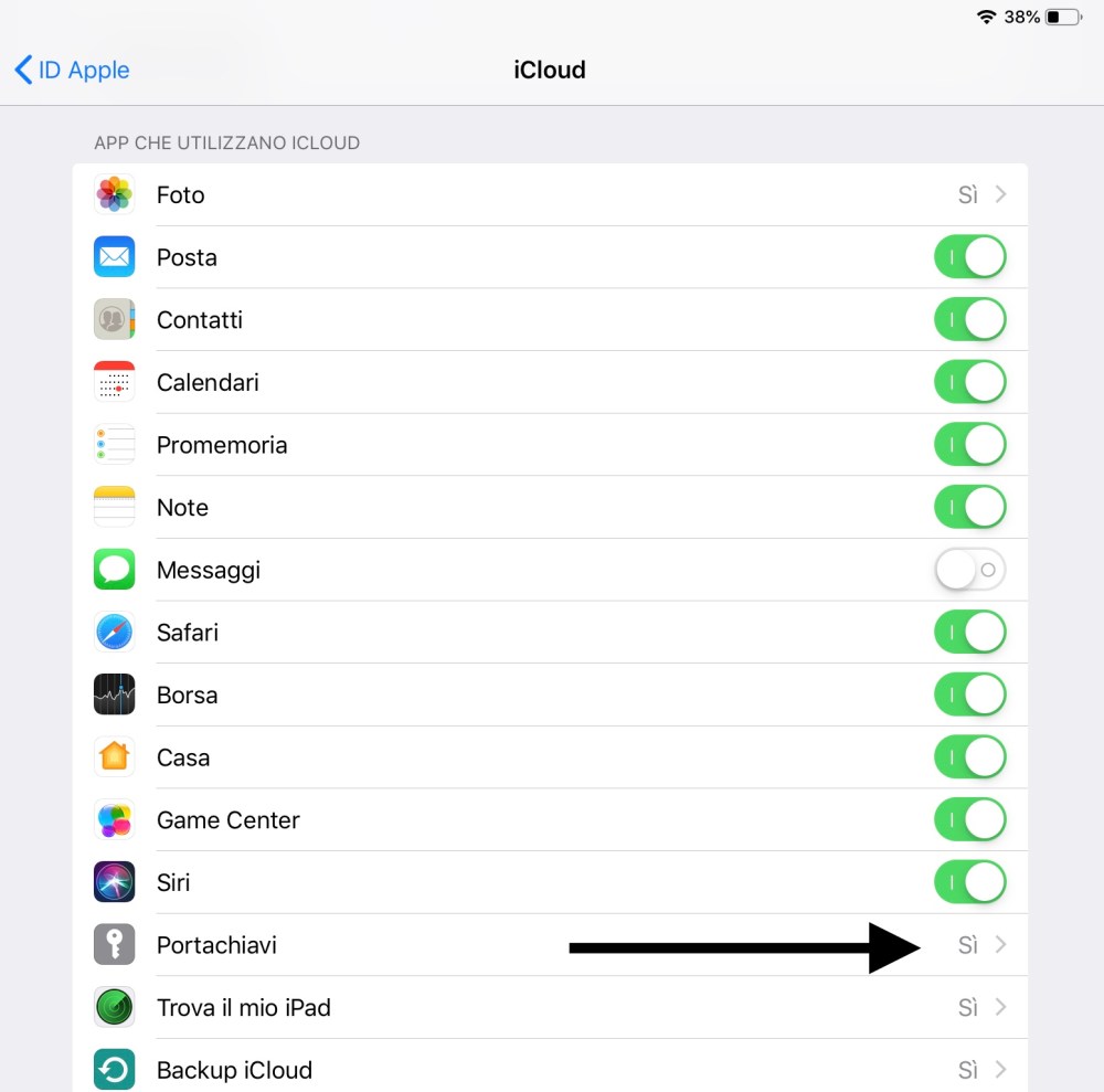 - Portachiavi iCloud su iPhone/iPad: Aprite Impostazioni > (Nome Utente) > iCloud, toccate Portachiavi, inserite le vostre credenziali e seguite le istruzioni della procedura guidata.