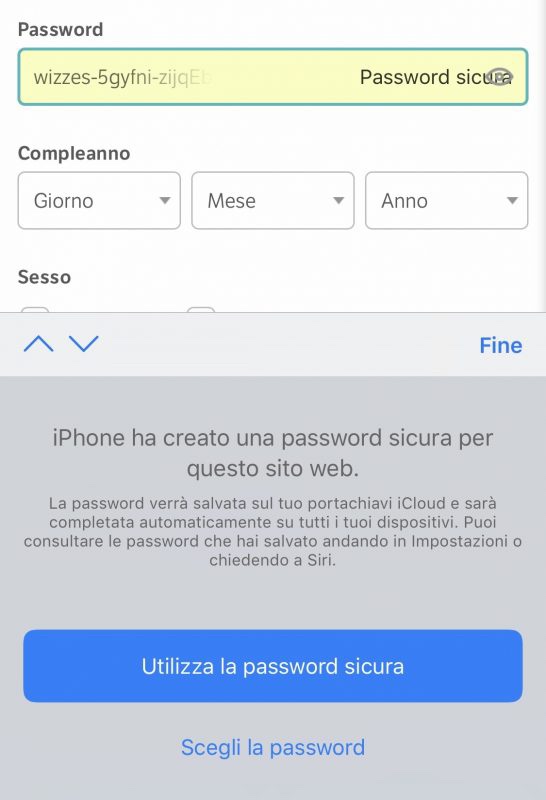 Il sistema suggerisce lui stesso delle password sicure a più caratteri, quando vogliamo cambiare password o ci stiamo registrando ad un nuovo sito.