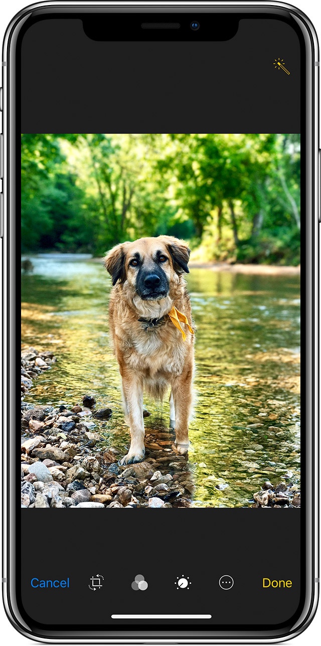 Con iPhone 8 Plus e modelli successivi, possiamo realizzare immagini in modalità ritratto ancora più belle grazie agli effetti luce professionali. Dopo aver scattato la foto, tocchiamo Modifica e scegliamo l’effetto che più ci aggrada tra Luce set fotografico, Luce contouring, Luce teatro o Luce teatro b/n, ricordandoci che su iPhone XR, Luce teatro e Luce teatro b/n non sono disponibili con la fotocamera posteriore.