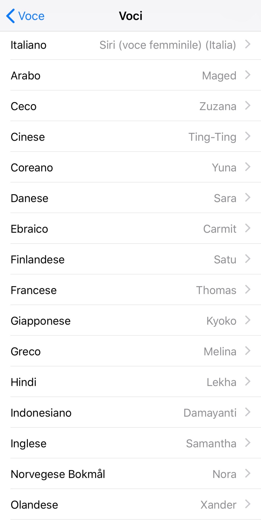 - Scegliamo la voce e la lingua che desideriamo usare per queste due funzioni.