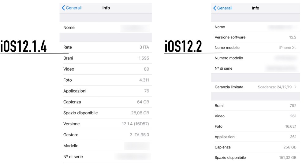Se andiamo in Impostazioni > Generali > Info noteremo che la grafica delle informazioni relative al nostro dispositivo è cambiata: