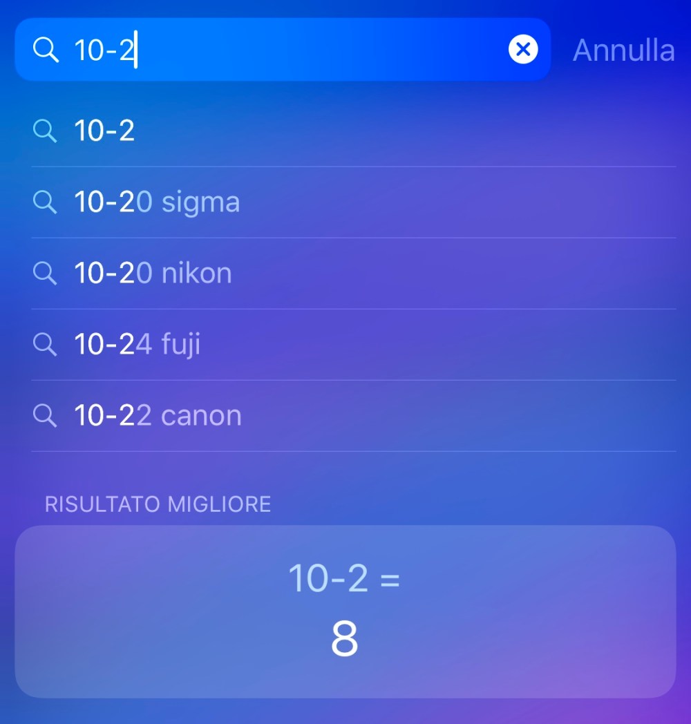 - Spotlight: Il motore di ricerca integrato nell’ iPhone può fare molto più che trovare contatti, app e messaggi; potete usarlo per fare un conteggio al posto della calcolatrice oppure convertire valute aggiornate in tempo reale, ricerche su Internet e molto altro. Mettetelo alla prova scorrendo la schermata Home verso destra.