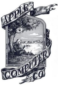 Il primo logo di Apple Computer raffigurava lo scienziato Isaac Newton seduto sotto a un albero di mele e fu disegnato da un socio di Steve Jobs, nel 1976, che pare avesse una gran passione per le mele, da qui il nome scelto per la società.