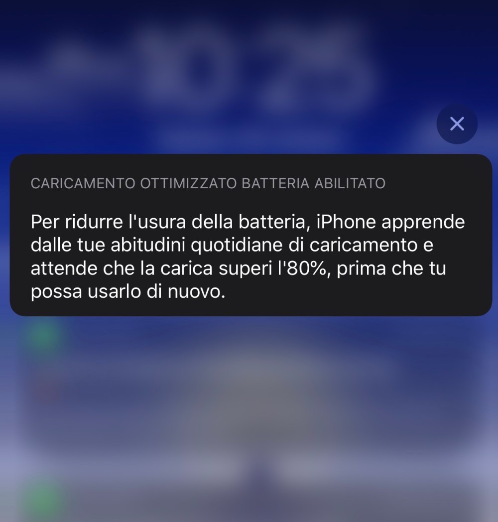 Quando l’iPhone ha raccolto dati sufficienti (che sono memorizzati solo sul dispositivo e non condivisi con Apple), ci dirà che il caricamento ottimizzato della batteria è stato abilitato, e riceveremo una notifica sulla schermata di blocco: