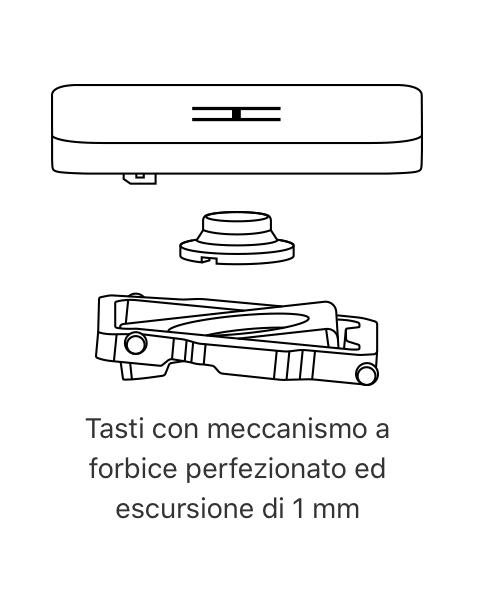 Tra le novità più interessanti troviamo anche la nuova Magic Keyboard introdotta lo scorso anno con il MacBook Pro da 16″. I tasti sono basati sul meccanismo a forbice ridisegnato ed escursione di 1mm che rendono comoda la digitazione.