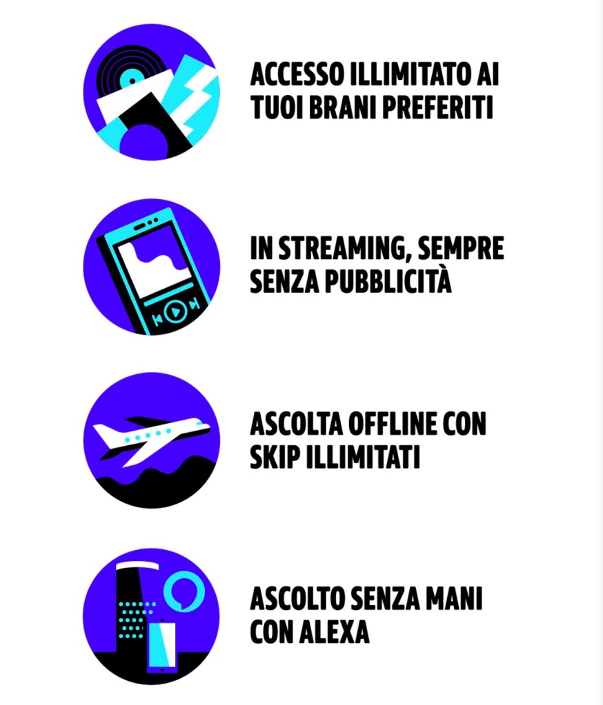 Amazon Music Unlimited è il servizio premium di musica digitale di Amazon che ti consente di accedere a più di 60 milioni di brani, inclusi i più recenti e famosi album, e migliaia di playlist e stazioni radio. Puoi riprodurre online o scaricare brani per l’ascolto offline senza interruzioni pubblicitarie. I clienti Amazon Music Unlimited hanno accesso all’esclusivo controllo vocale su dispositivi abilitati Alexa. Con Alexa, puoi gestire la tua musica tramite la tua voce. È semplice, chiedi ad Alexa di riprodurre qualsiasi brano o artista. Se non sai cosa ascoltare, puoi chiedere ad Alexa di riprodurre brani relativi ad umori, occasioni, o qualsiasi periodo storico e genere.