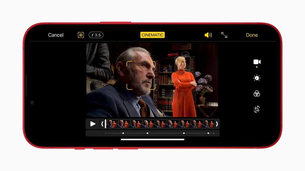 La modalità Cinema introdotta su iPhone è il frutto di uno studio approfondito sulla fotografia nei film e sull’utilizzo efficace di tecniche come il rack focus; questa modalità registra video di persone, animali e oggetti con un bellissimo effetto di profondità e variazioni automatiche della messa a fuoco, perciò ogni utente potrà ripredendere momenti in stile cinematografico pur non essendo un regista professionista. Per un maggiore controllo creativo, la messa a fuoco può essere modificata durante e dopo le riprese; è anche possibile regolare la messa a fuoco dello sfondo (effetto bokeh) nell’app Foto, in iMovie per iOS e a breve anche in iMovie per macOS e in Final Cut Pro.5 I modelli iPhone 13 sono al momento gli unici dispositivi in grado di eseguire l’editing dell’effetto profondità di campo persino dopo la registrazione. La modalità Cinema, possibile grazie alla potenza del chip A15 Bionic e ad avanzati algoritmi di machine learning, registra in Dolby Vision HDR. Entrambi i modelli offrono inoltre la possibilità di registrare video HDR con Dolby Vision, dall’acquisizione all’editing, fino alla condivisione, ora supportato per lo standard 4K fino a 60 fps su tutte le fotocamere.