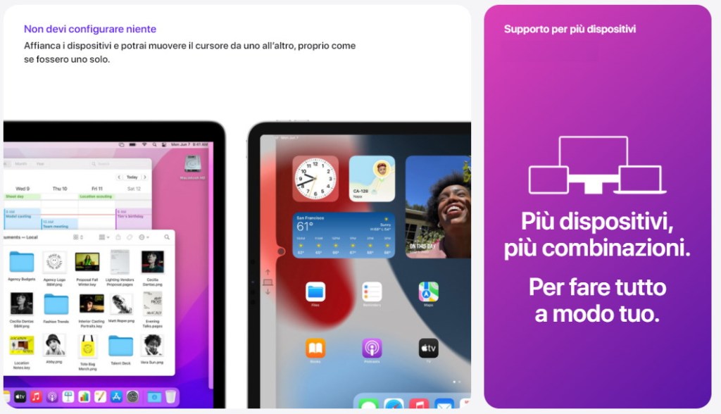 Controllo Universale permette di controllare senza problemi più dispositivi Apple, inclusi iMac, MacBook e iPad, tutti con la stessa tastiera e mouse.