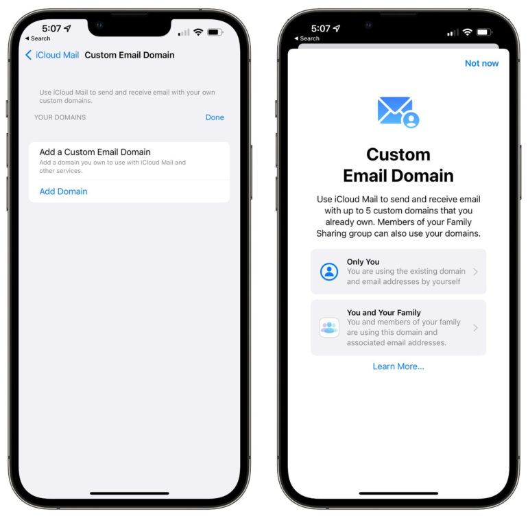 Durante la presentazione di iCloud+, Apple accennò alla possibilità di utilizzare la Mail di iCloud per gestire la posta elettronica dei propri domini o per creare nuovi indirizzi email personalizzati.