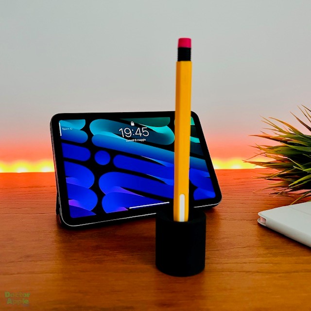 Apple Pencil 2 durante i periodi di inattività, potrà essere riposta al sicuro nello stand porta matita di Elago in silicone ultra resistente e protetta dalla simpatica skin in silicone, che richiama le iconiche matite.