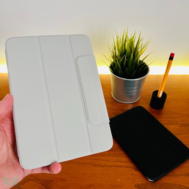 Sottile e perfettamente delineata sulle curve di iPad Mini 6, la custodia Smart Folio di Elago si aggancia magneticamente al retro del tablet e permette di coprire retro e display frontale.