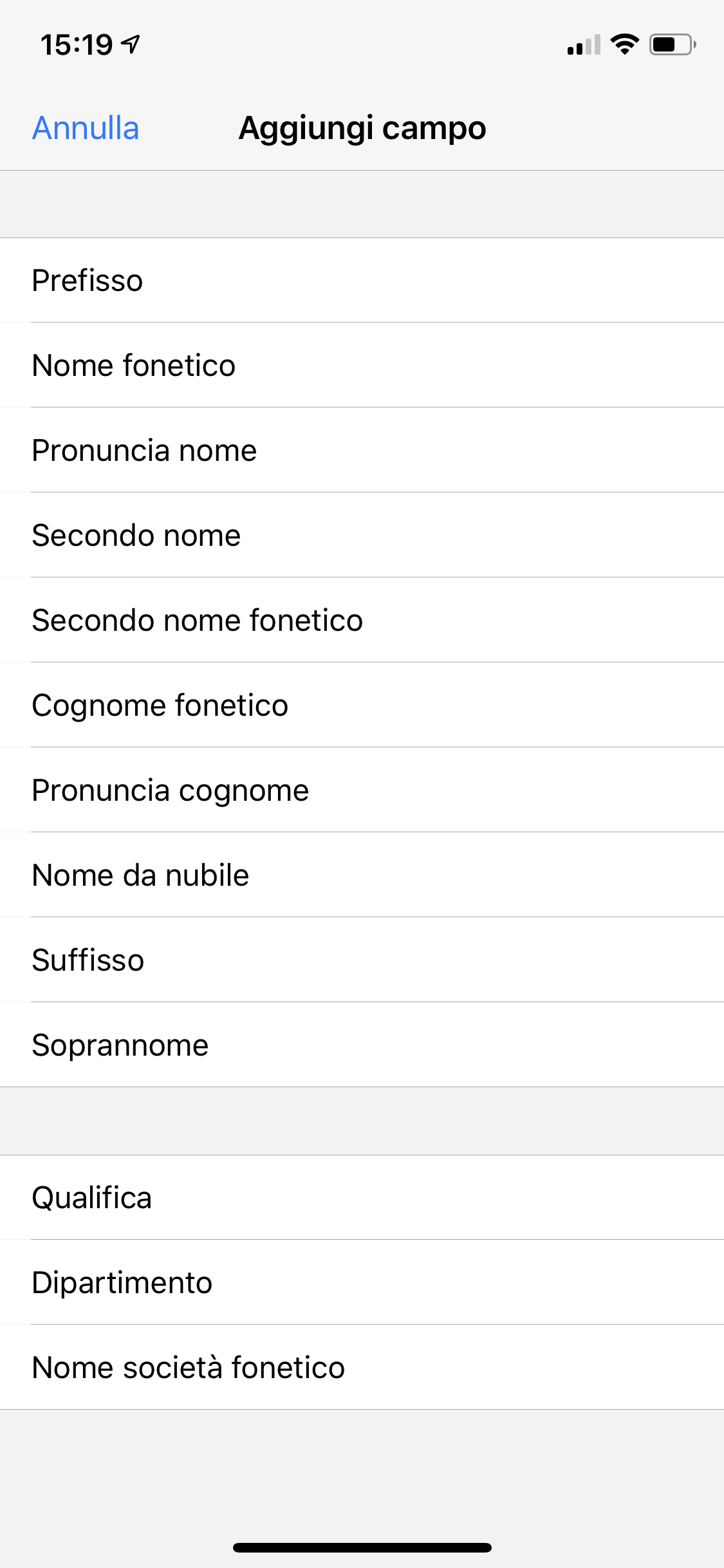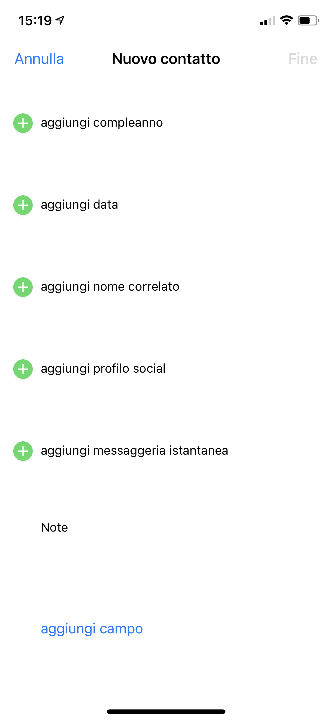 Con Aggiungi Campo, possiamo aggiungere altri campi predefiniti che ci propone il nostro iPhone.