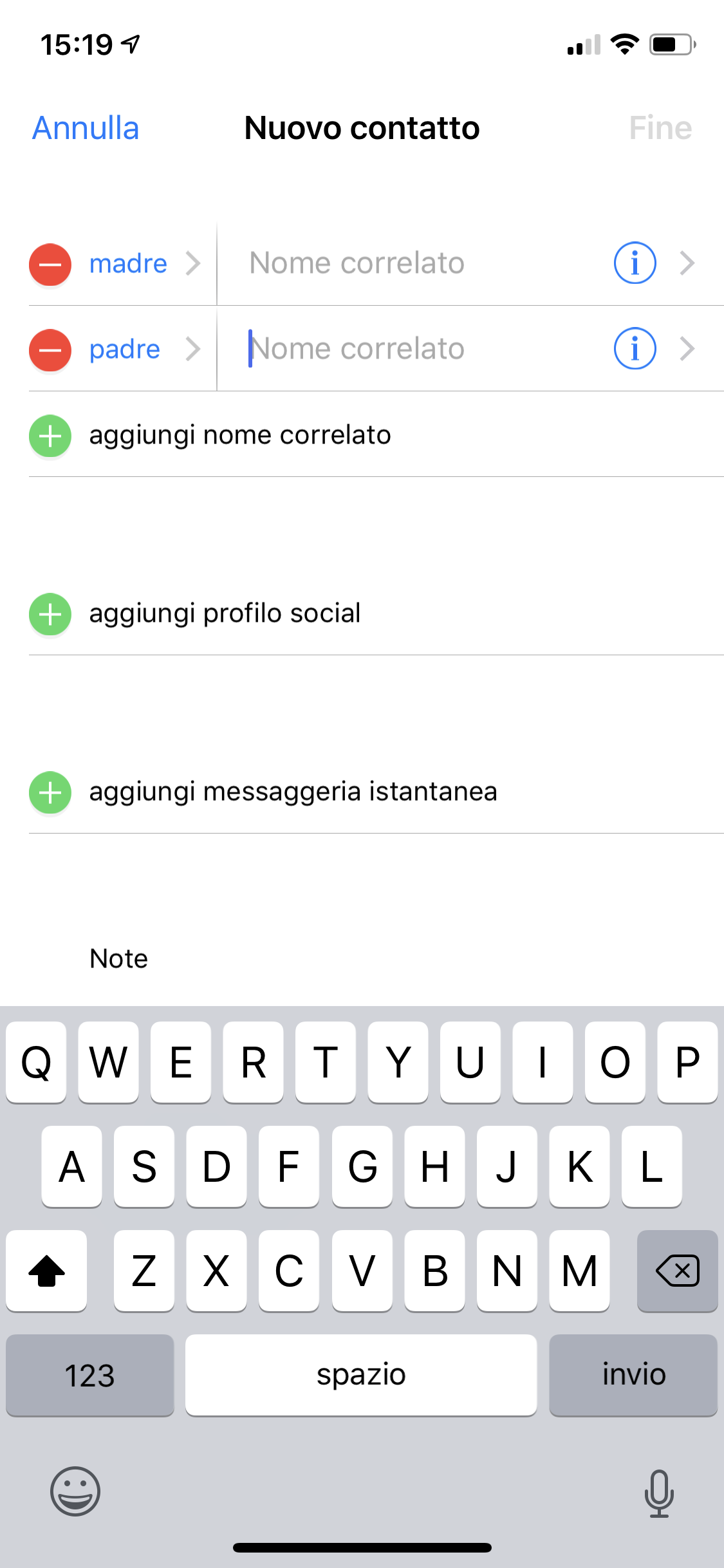 Aggiungi Indirizzo invece è utilissimo per rintracciare al volo, e raggiungere il luogo indicato nel contatto, direttamente chiedendo a Siri, aprendo l’app Mappe oppure inserendo un evento in Calendario. Anche questo campo può ospitare luoghi multipli: ad esempio possiamo chiedere a Siri di indicarci la strada per l’ufficio di Mario Rossi, oppure possiamo creare un evento per una cena inserendo nell’app calendario come luogo il ristorante salvato.