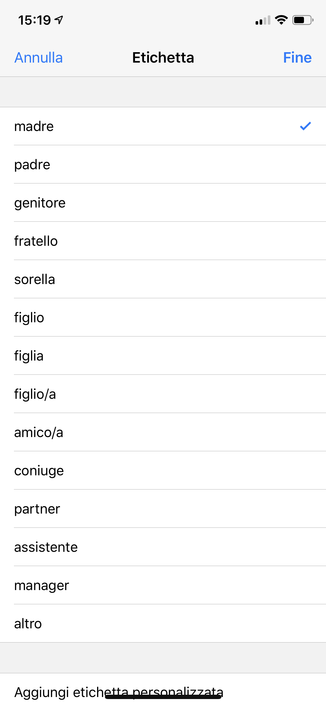 Stesso discorso per la sezione Aggiungi Data, utile per ricordare un altro avvenimento ricorrente o importante associato a quel contatto (pensiamo alla data del nostro anniversario di matrimonio) e indicare un’etichetta personalizzata, ritrovando poi la data segnata sull’app Calendario.
