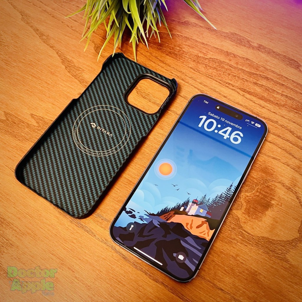 Compatibile con la tecnologia MagSafe grazie all’anello interno, MagEZ Pro 3 di Pitaka ha un grado di protezione MIL-STD-810H, e nonostante lo spessore, non snatura il design di iPhone.